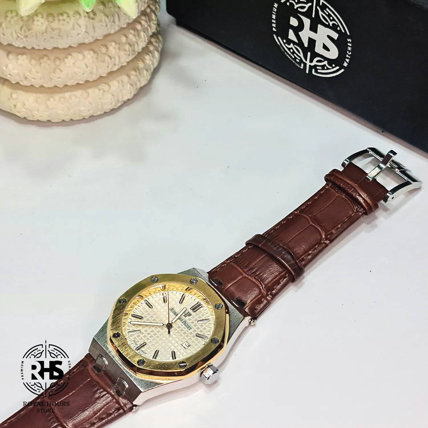 Experience the elegance of the AP Royal Oak With Date, featuring a signature octagonal bezel and a premium leather strap that elevates your wrist game. This watch combines classic Swiss-inspired design with a practical date display, perfect for men who value both style and functionality.