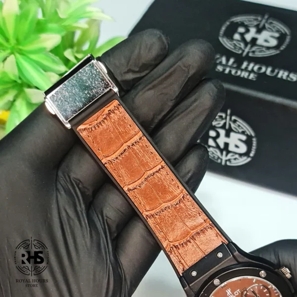 Elevate your wristwear with the Hublot Leather Silicon Watch, crafted for those who value both elegance and practicality. This premium replica combines a durable silicon base with a luxurious leather overlay for unmatched comfort and a modern look.